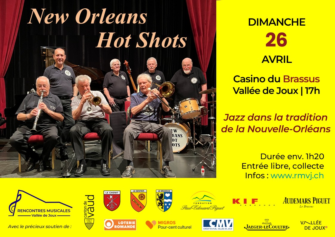 Le New Orleans Hot Shots, groupe fondé en 1987, compte parmi les quelques formations qui jouent encore du Jazz New Orleans dans la plus pure tradition. Improvisation, enthousiasme, sentiment, jeu simple et spontané caractérisent leur musique. Les New Orleans Hot Shots jouent une musique toujours de circonstance que ce soit dans les clubs, les festivals, les fêtes villageoises ou les villes, dans les croisières, dans les réunions culturelles, aussi bien que dans le privé. Leur répertoire de plus que 250 titres assure une variété dans l’écoute.